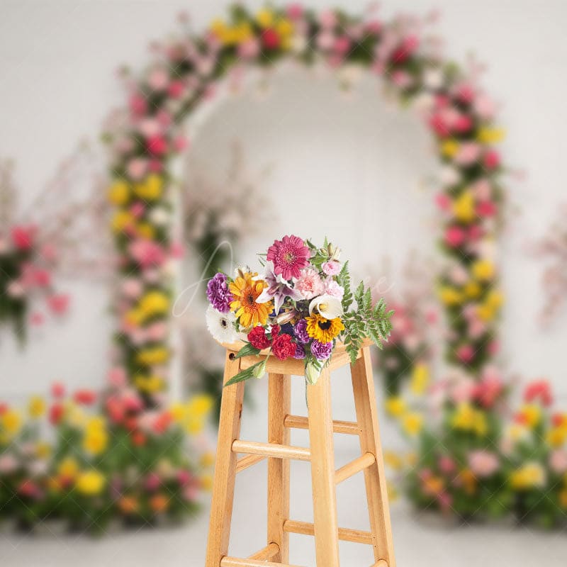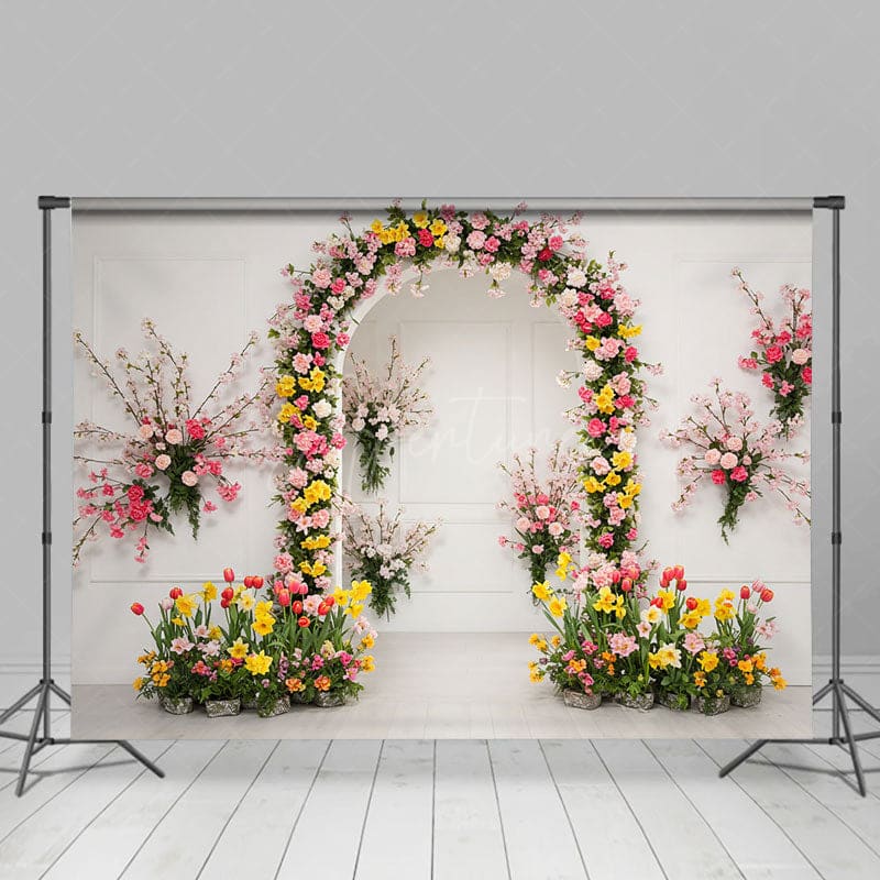 Aperturee Floral Arch White Walls Elegant Wedding Backdrop