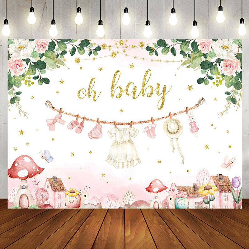 Aperturee Pink Floral Country House Mushroom Oh Baby Backdrop