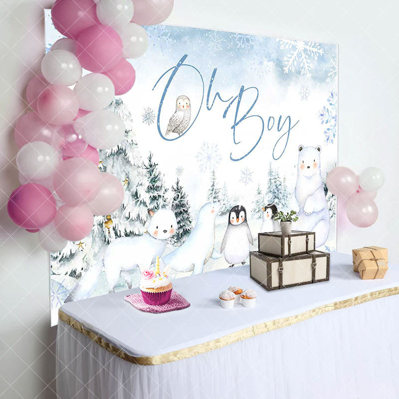 Aperturee Snow Forest Safari Animal Oh Boy Baby Shower Backdrop