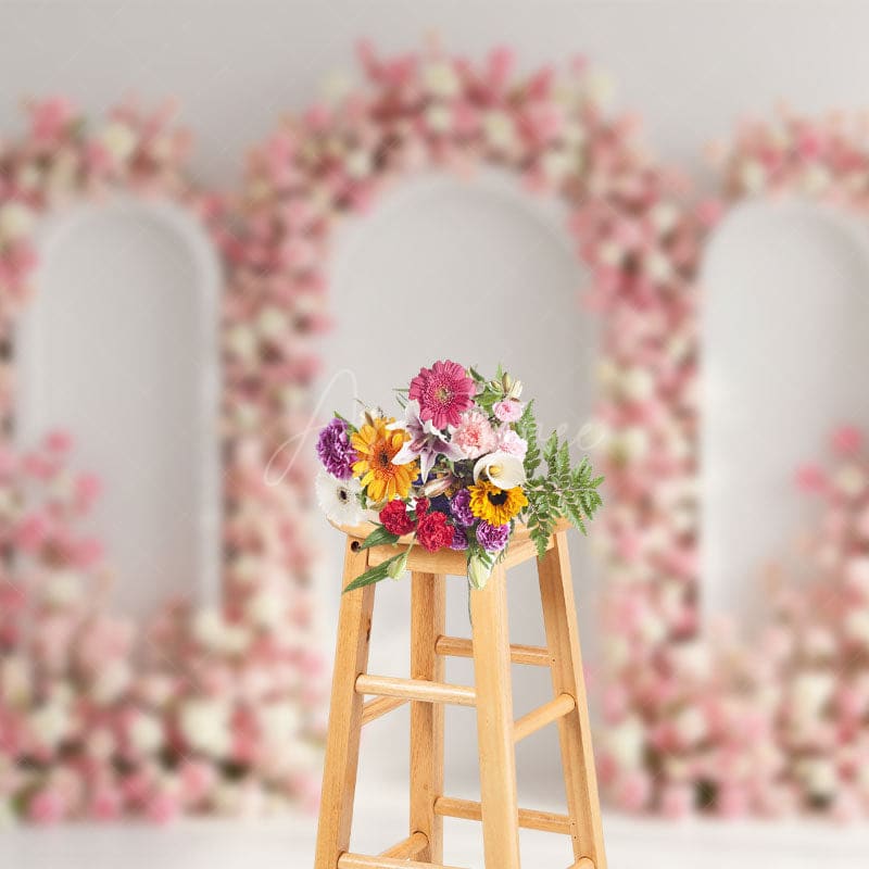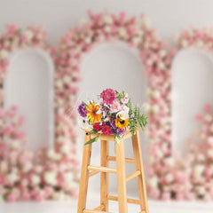 Aperturee Sweet Pink Triple Arch Door Elegant Wedding Backdrop
