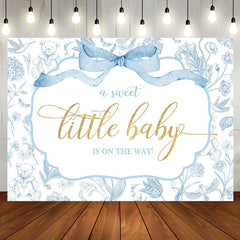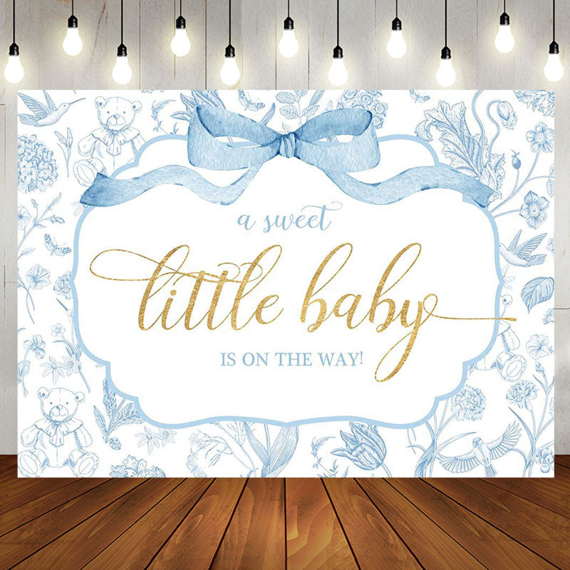 Aperturee White Blue Bear Floral Sweet Little Baby Backdrop