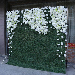 Aperturee White Flower Artificial Greenery Wall For Wedding