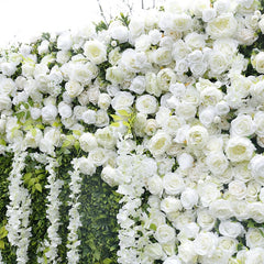 Aperturee White Rose Green Leaves Faux Floral Wall Backdrop
