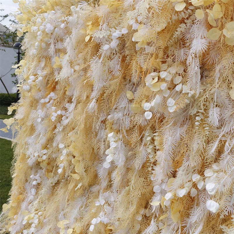 Aperturee Yellow Boho Faux Spruce Leaf Floral Wall Backdrop