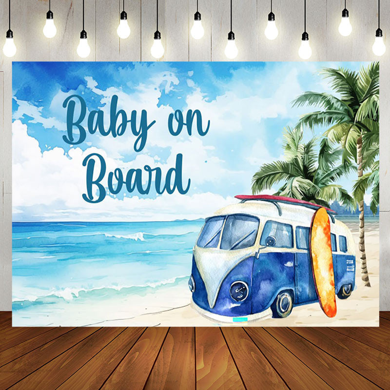 Baby on Board Seaside Coconut Tree Baby Shower Backdrop