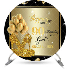 Black Gold Balloon Heel Round 90th Birthday Backdrop