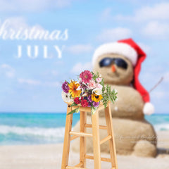 Blue Sky Sea Beach Sandman Christmas In July Backdrop