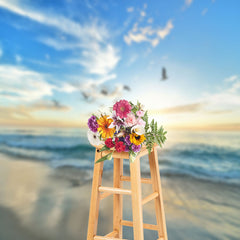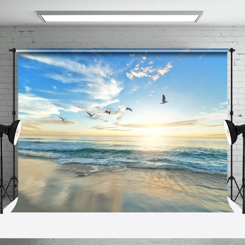 Blue Sky Sunset Seagull Beach Photography Backdrop