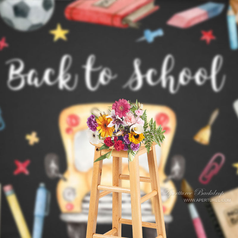 Bus Ruler Pencil Book Ball Back To School Backdrop