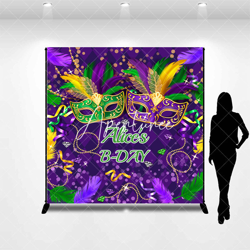 Custom Name Purple Mask Masquerade Birthday Backdrop