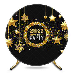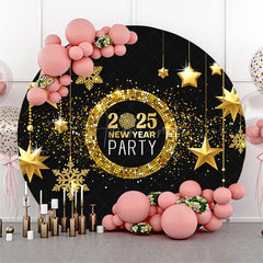 Golden Five Pointed Star Happy New Year Round Backdrop