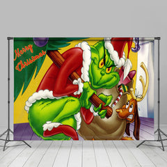 Horrible Green Monster Santa Elk Christmas Backdrop
