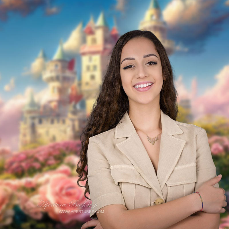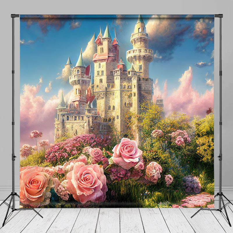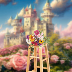 Pink Floral Fantasy Fairy Tale Castle Phtot Backdrop