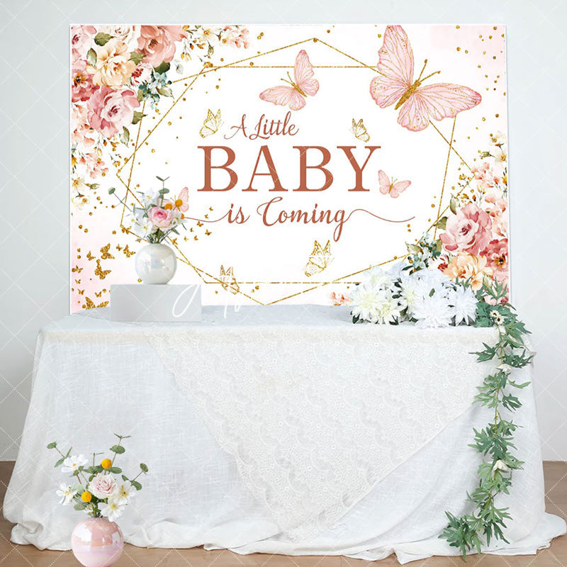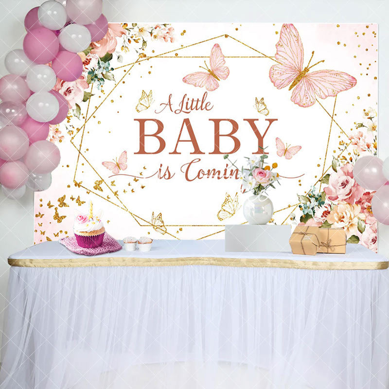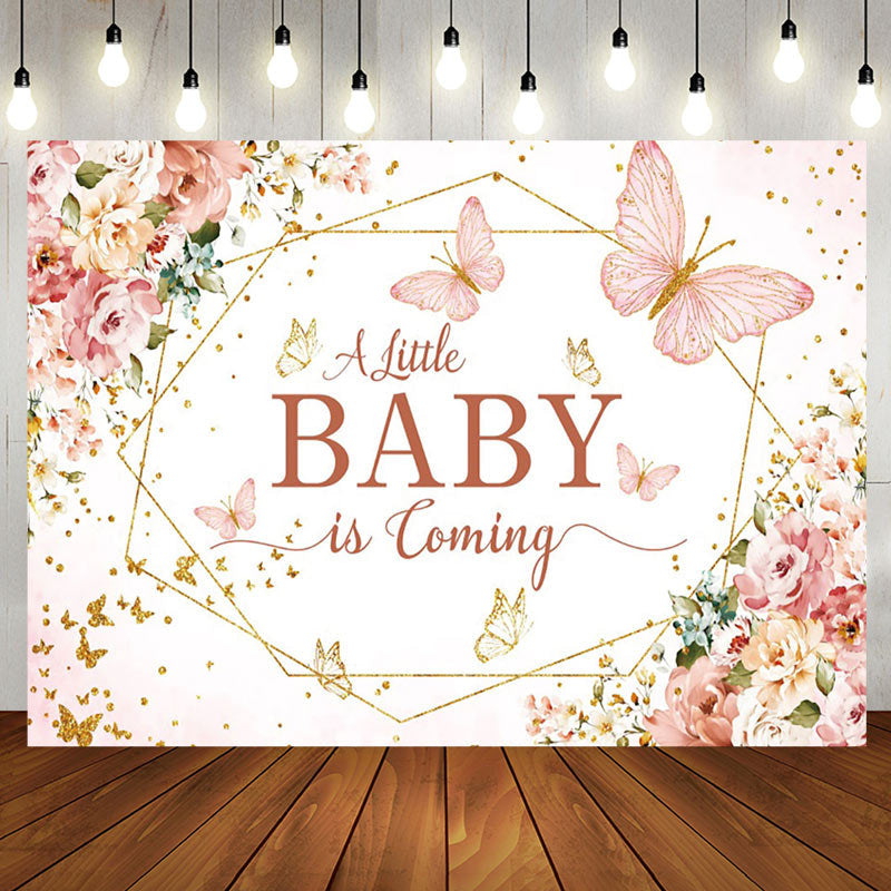Pink Floral Little Baby Coming Baby Shower Backdrop