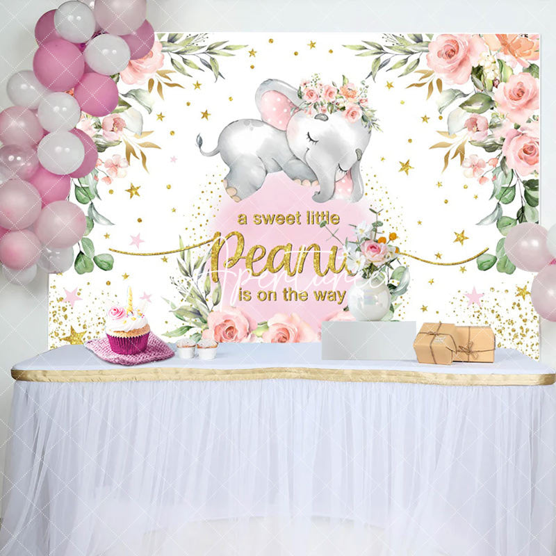 Pink Peanut Floral Baby Shower Backdrop for Girl