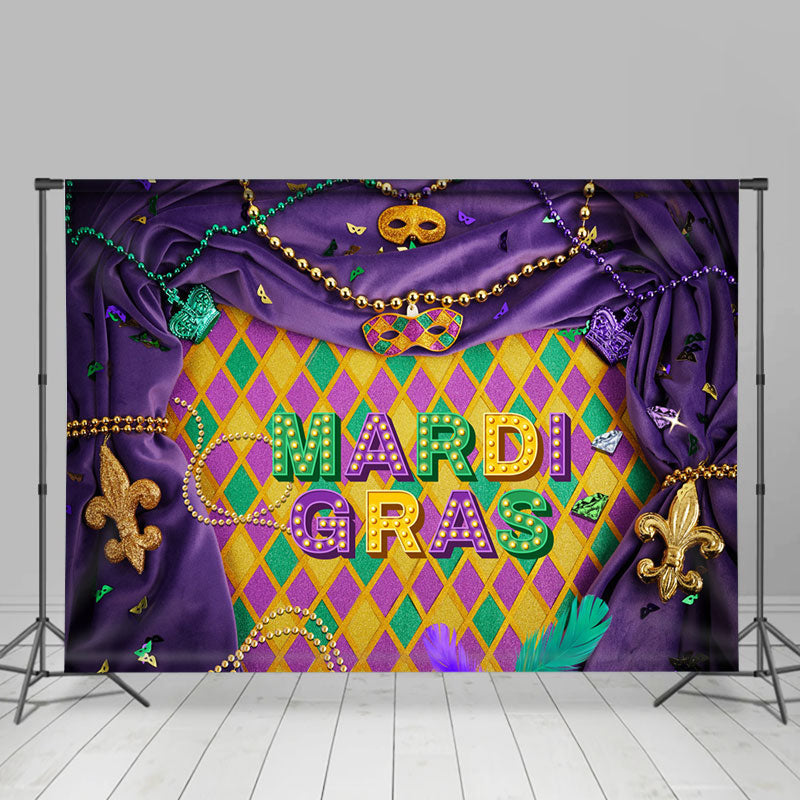 Purple Glitter Masquerade Mardi Gras Backdrop