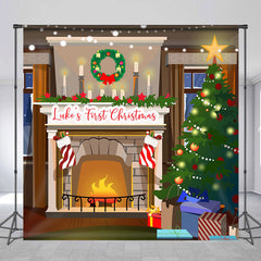 Xmas Tree Fireplace Custom Name Christmas Backdrop