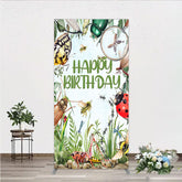 Aperturee Bug Themed Happy Birthday Rectangle Backdrop, Insect Explorer with Magnifying Glass, Kids Garden Party Decor