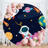 Astronaut And Rocket Round Birthday Backdrop