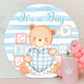 Round Its A Boy Bear Blue Baby Shower Backdrop