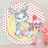 Round Pink Rabbit Moon Happy Birthday Backdrop