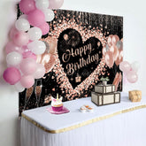 Aperturee Black Rose Gold Balloons Happy Birthday Backdrop