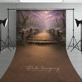 Aperturee Enchanted Forest with Wooden Bridge Sweep Backdrop, Magical Purple Flowers, Fairytale Photo Studio Floor Drop