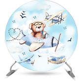 Blue Sky Little Bear Plane Round Birthday Backdrop Kit