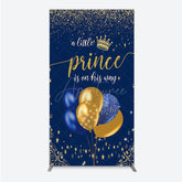 Aperturee A Little Prince is on His Way Rectangle Backdrop, Royal Blue and Gold Balloons, Boy Baby Shower Party Decor