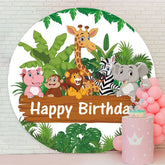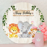 Jungle Animals And Log Wood Round Birthday Backdrop