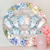 Blue Elephant And Floral Round Wood Baby Shower Backdrop