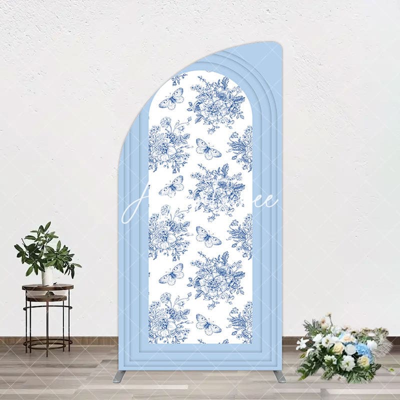 Aperturee Blue White Porcelain Happy Birthday Arch Backdrop