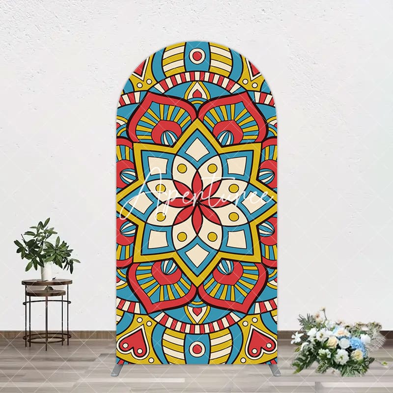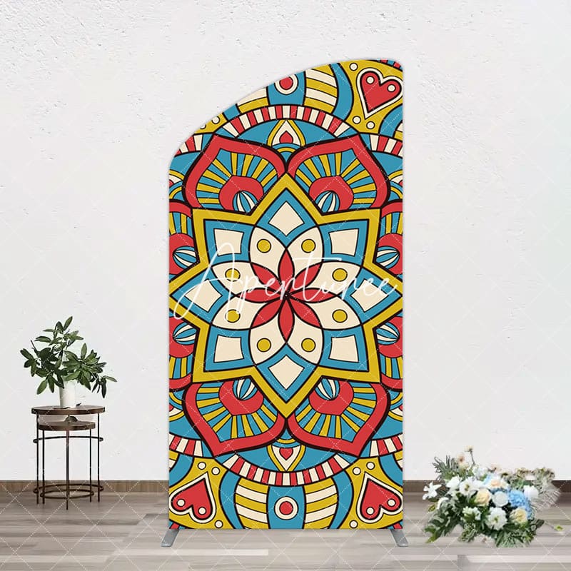 Aperturee Colorful Artistic Floral Mandala Lohri Arch Backdrop