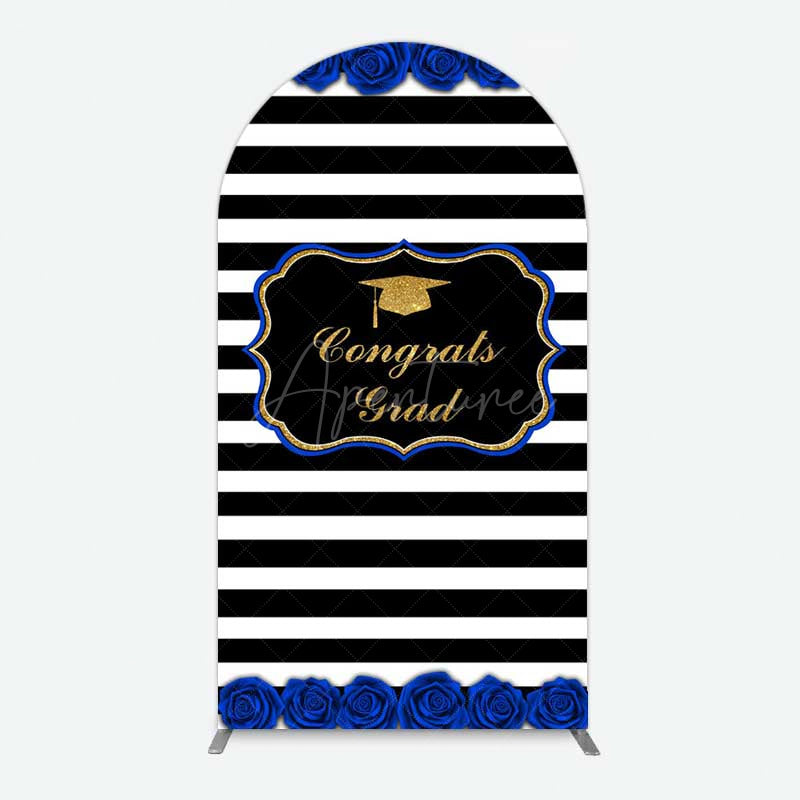 Aperturee Congrats Grad Royal Blue Flower Arch Backdrop