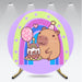 Aperturee Cute Capybara Birthday Party Round Backdrop Kit, Pastel Rainbow and Cake, Kawaii Animal Theme for Kids Decor
