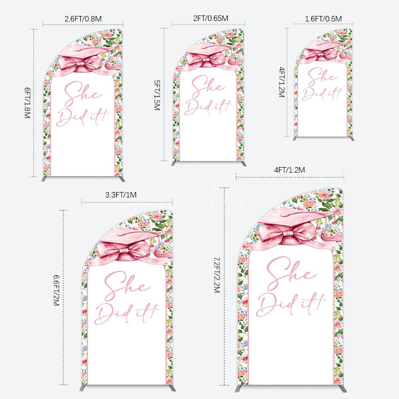 Aperturee Floral Pink Bachelor Cap She Did It Grad Half Moon Arch Backdrop