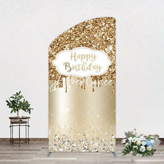 Aperturee Light Gold Glitter Diamonds Birthday Arch Backdrop