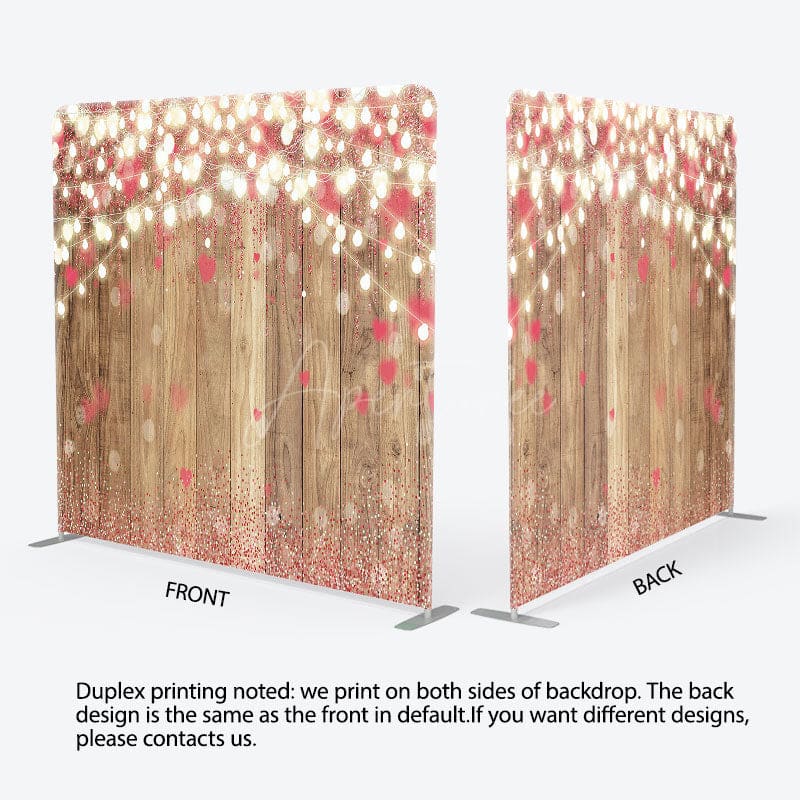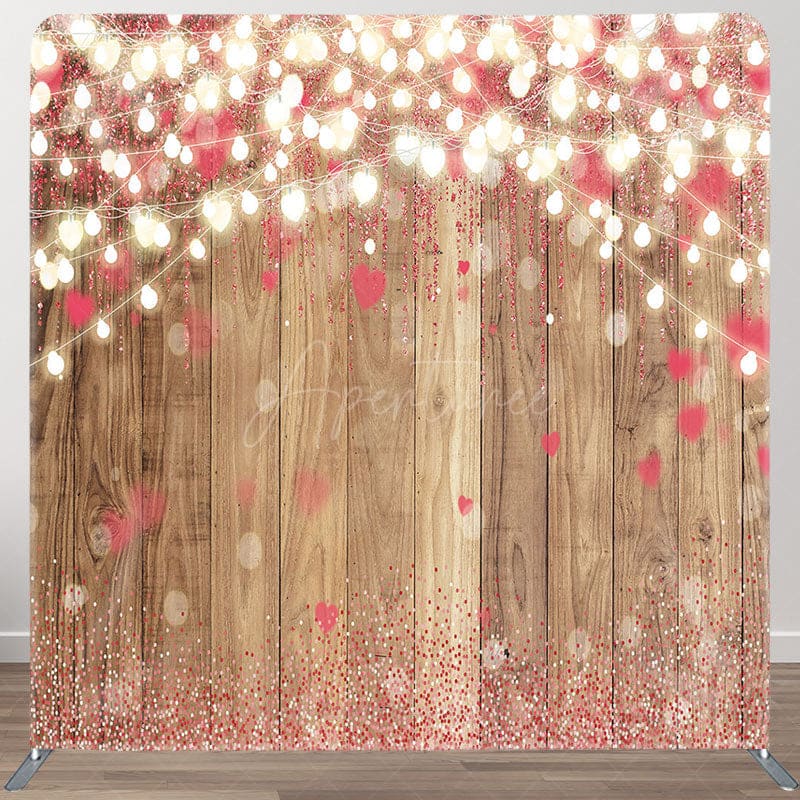 Aperturee Lighted Pink Heart Bokeh Wood Pillow Cover Backdrop