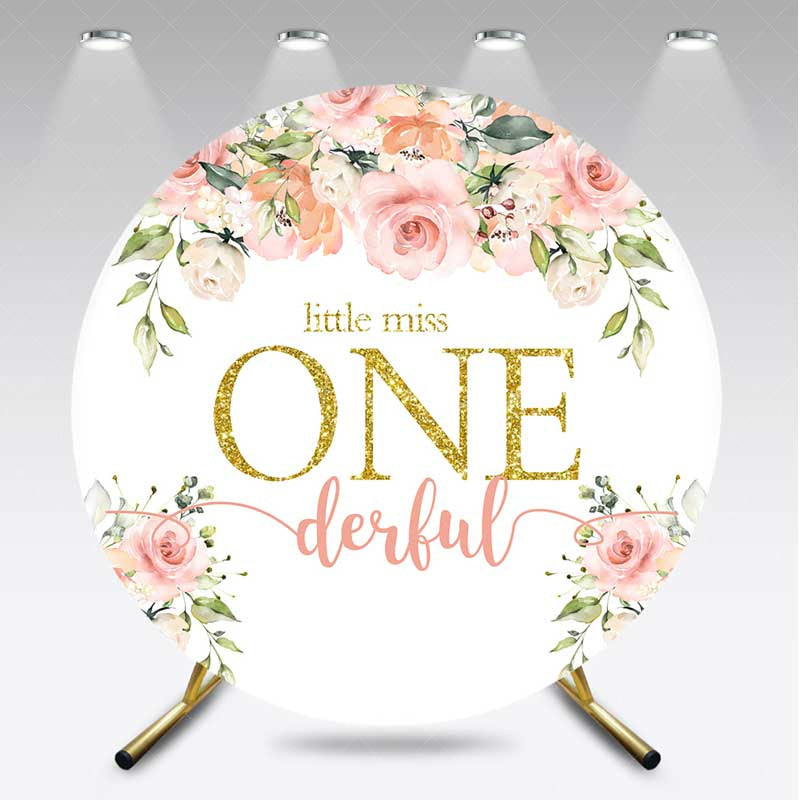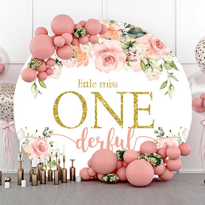 Aperturee Miss Onederful Pink Floral Round Birthday Backdrop