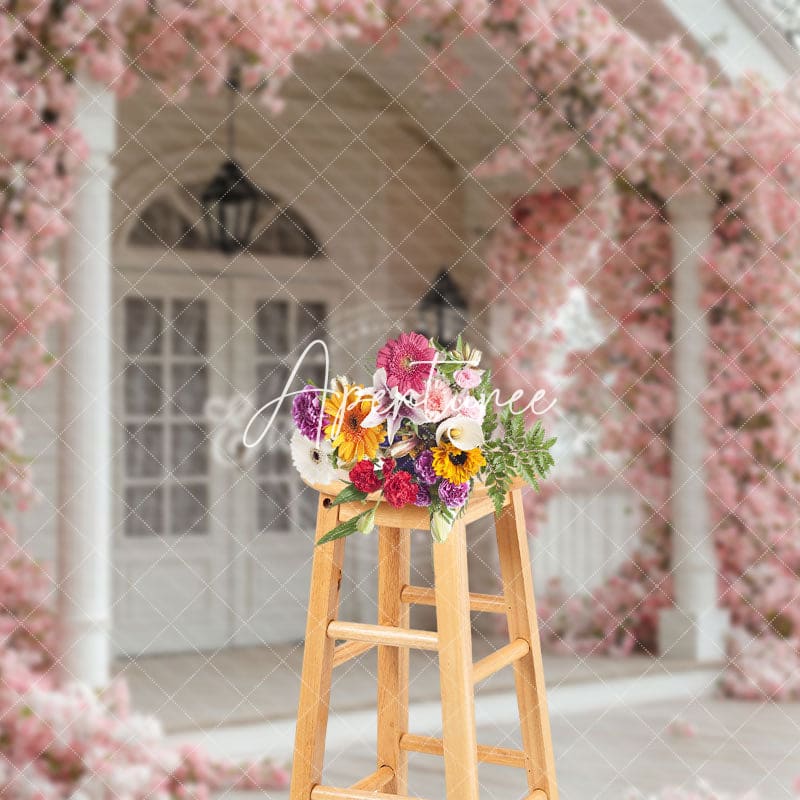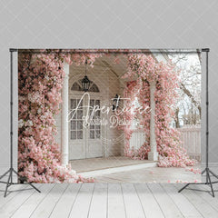 Aperturee Pink Blooming Flower White Door Spring Backdrop