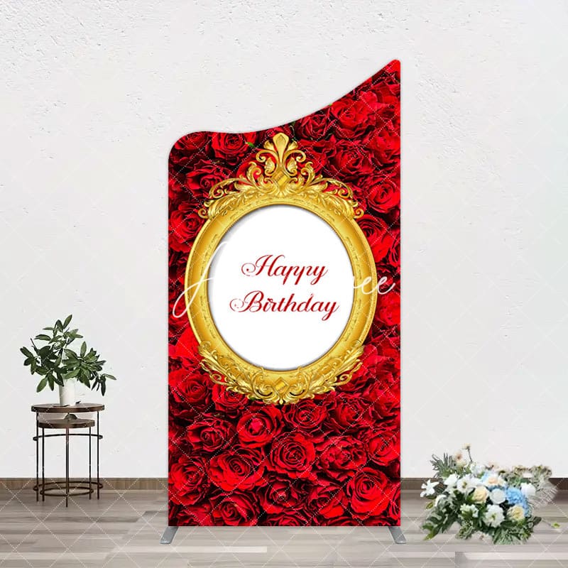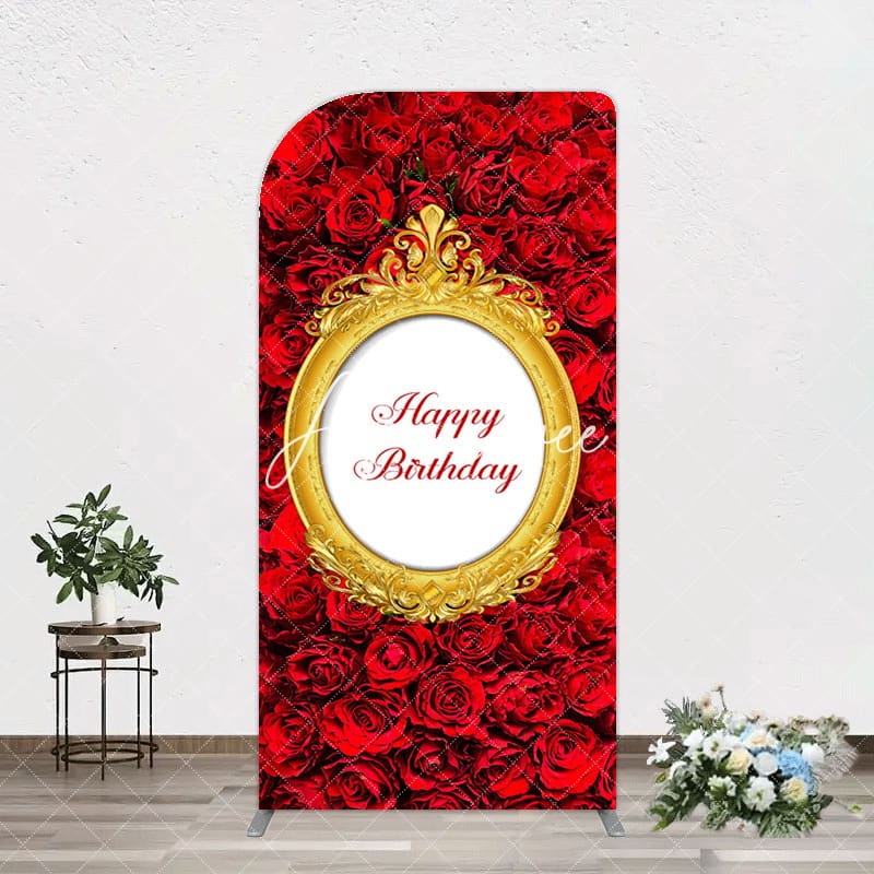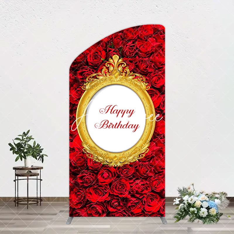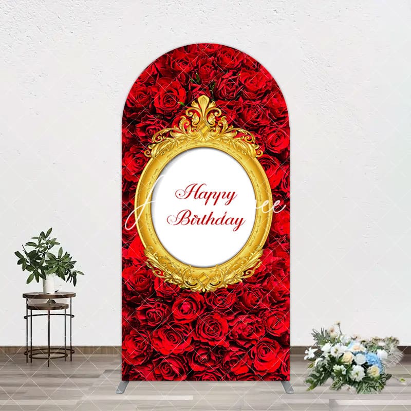 Aperturee Romantic Hot Red Rose Happy Birthday Arch Backdrop