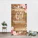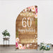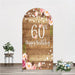 Aperturee Rustic Floral 60th Birthday Arch Backdrop for Women, Pink Peony on Wood Background, String Lights Party Decor