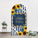 Aperturee Sunflower Blue Rose Birthday Arch Backdrop, Navy Stripe Floral Party Decoration, Gold Frame Pearl Background