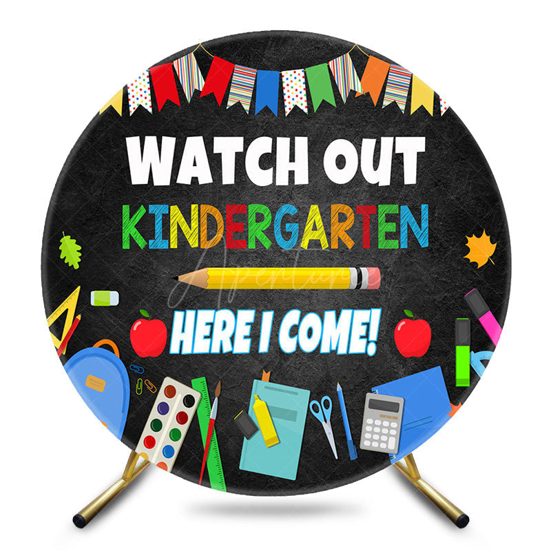 Aperturee Watch Out Kindergarten Round Back To School Backdrop