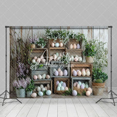 Aperturee Wooden Cabinet Easter Eggs Floral Spring Backdrop