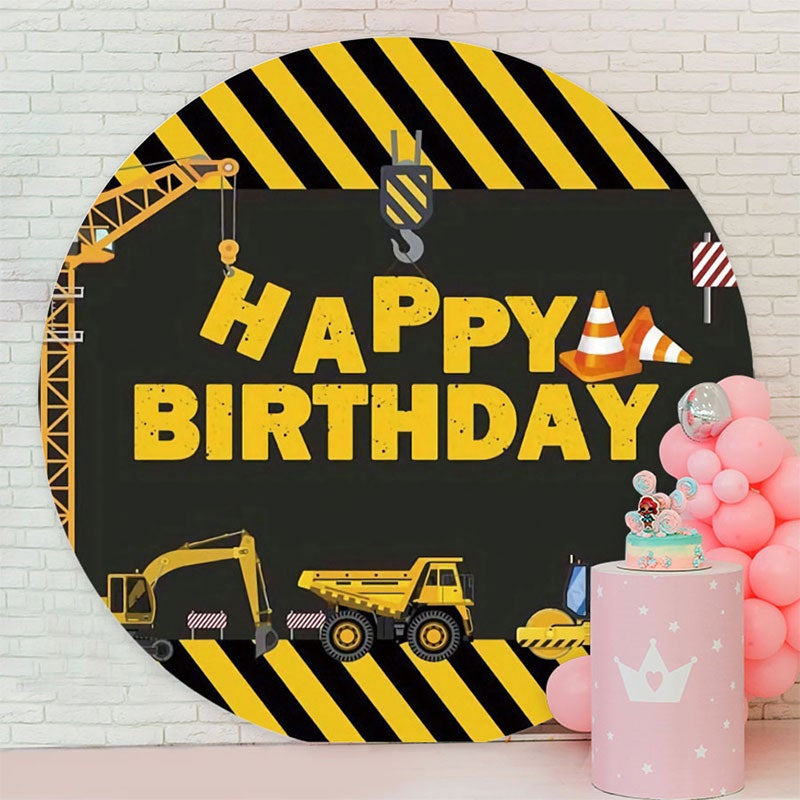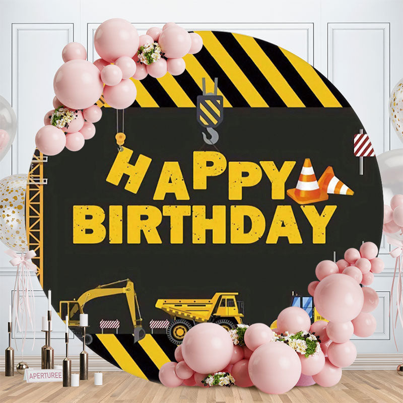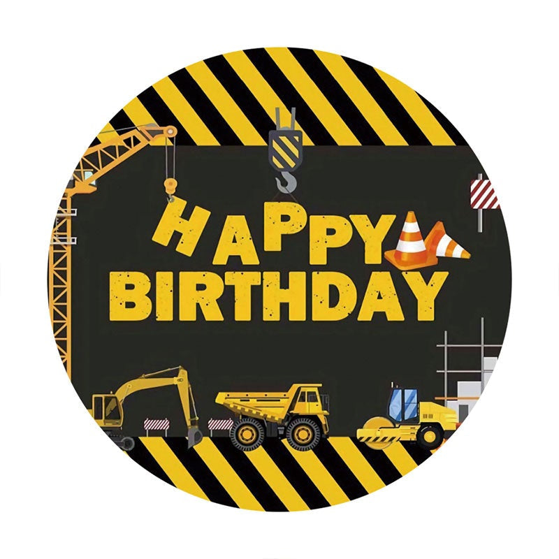 Black And Yellow Trnck Round Boys Birthday Backdrop
