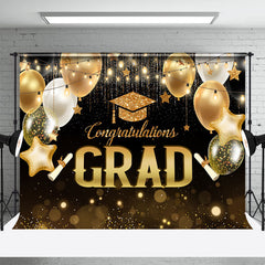 Black Gold Balloons Bokeh Congrats Grad Backdrop