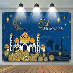 Blue Night Cultural Palace Flower Eid Mubarak Backdrop