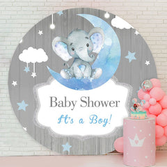 Circle Its A Boy Blue Elephant Baby Shower Backdrop