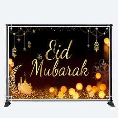 Flower Pattern Moon Bokeh Black Eid Mubarak Backdrop